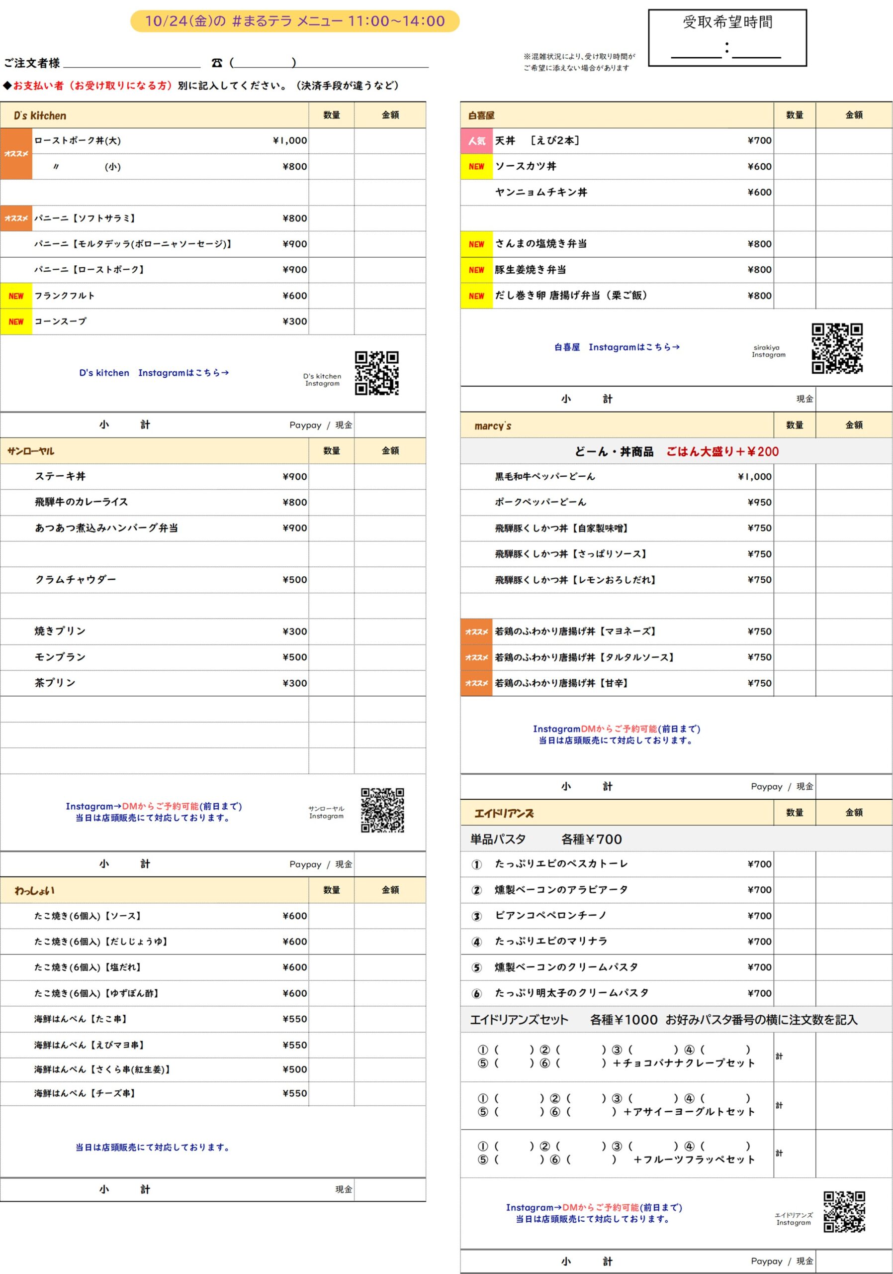 まるのうちのメニューはこちら!(2025/ 10/24)
