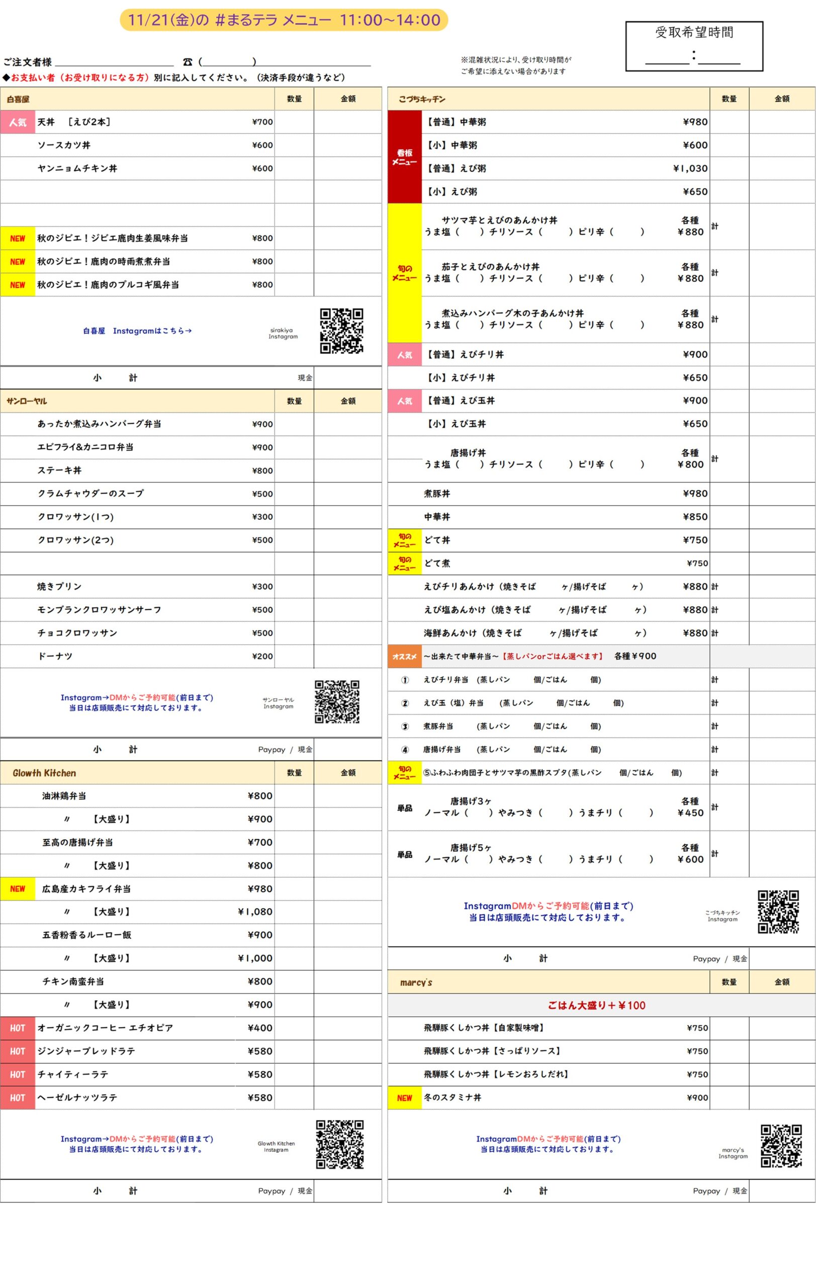 まるのうちのメニューはこちら!(2025/ 11/21)