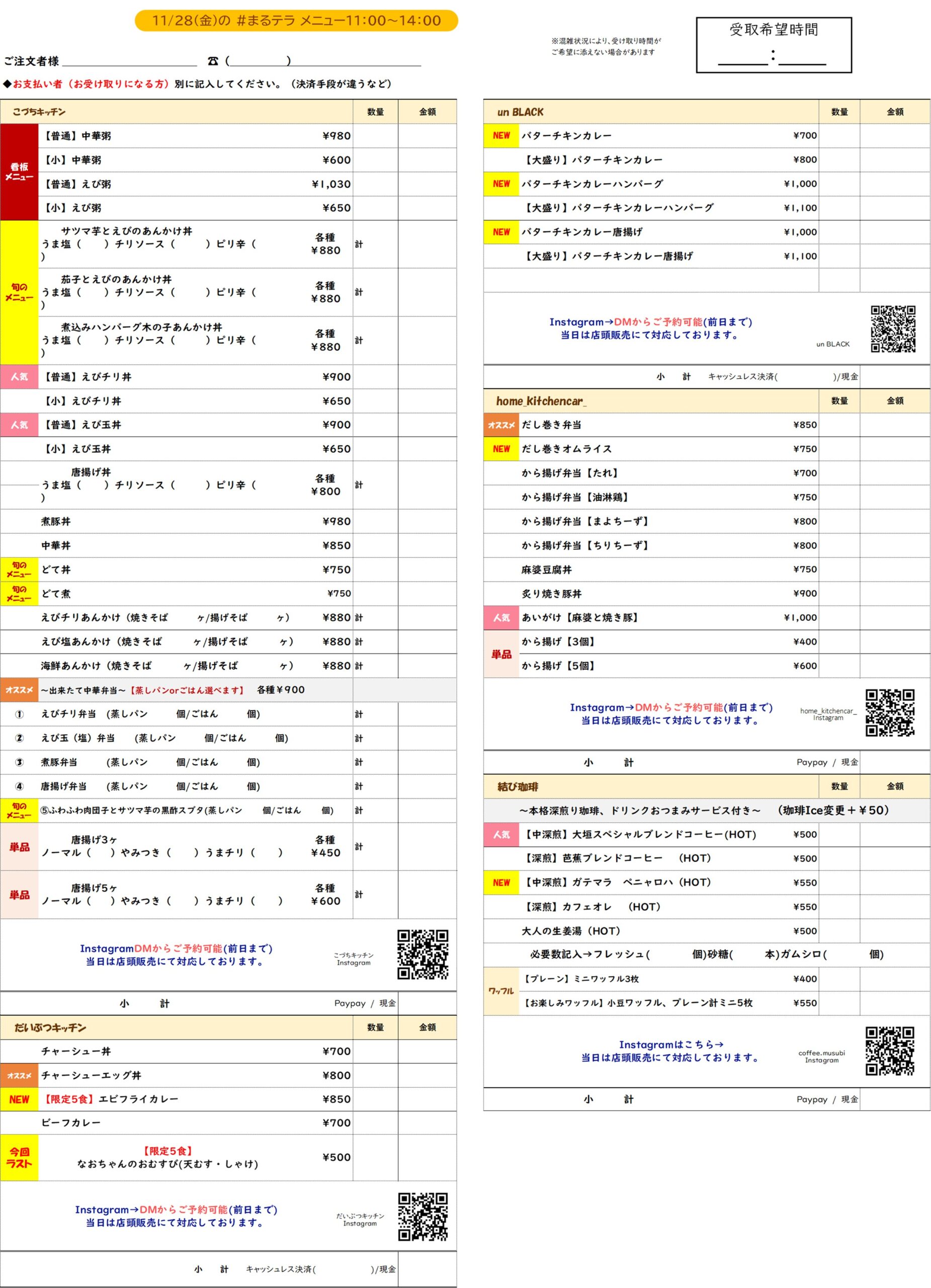 まるのうちのメニューはこちら!(2025/ 11/28)