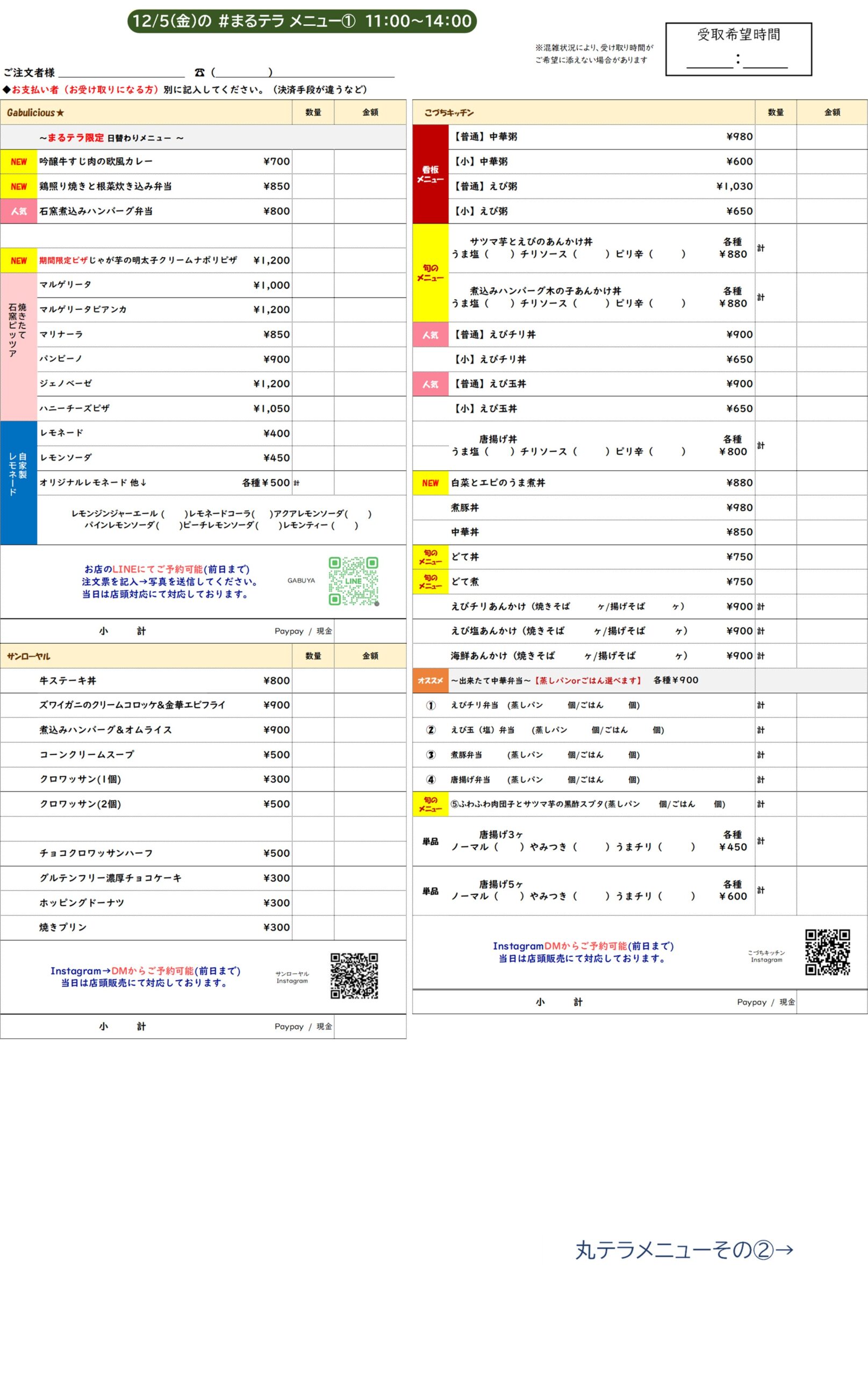まるのうちのメニューはこちら!(2025/ 12/5)