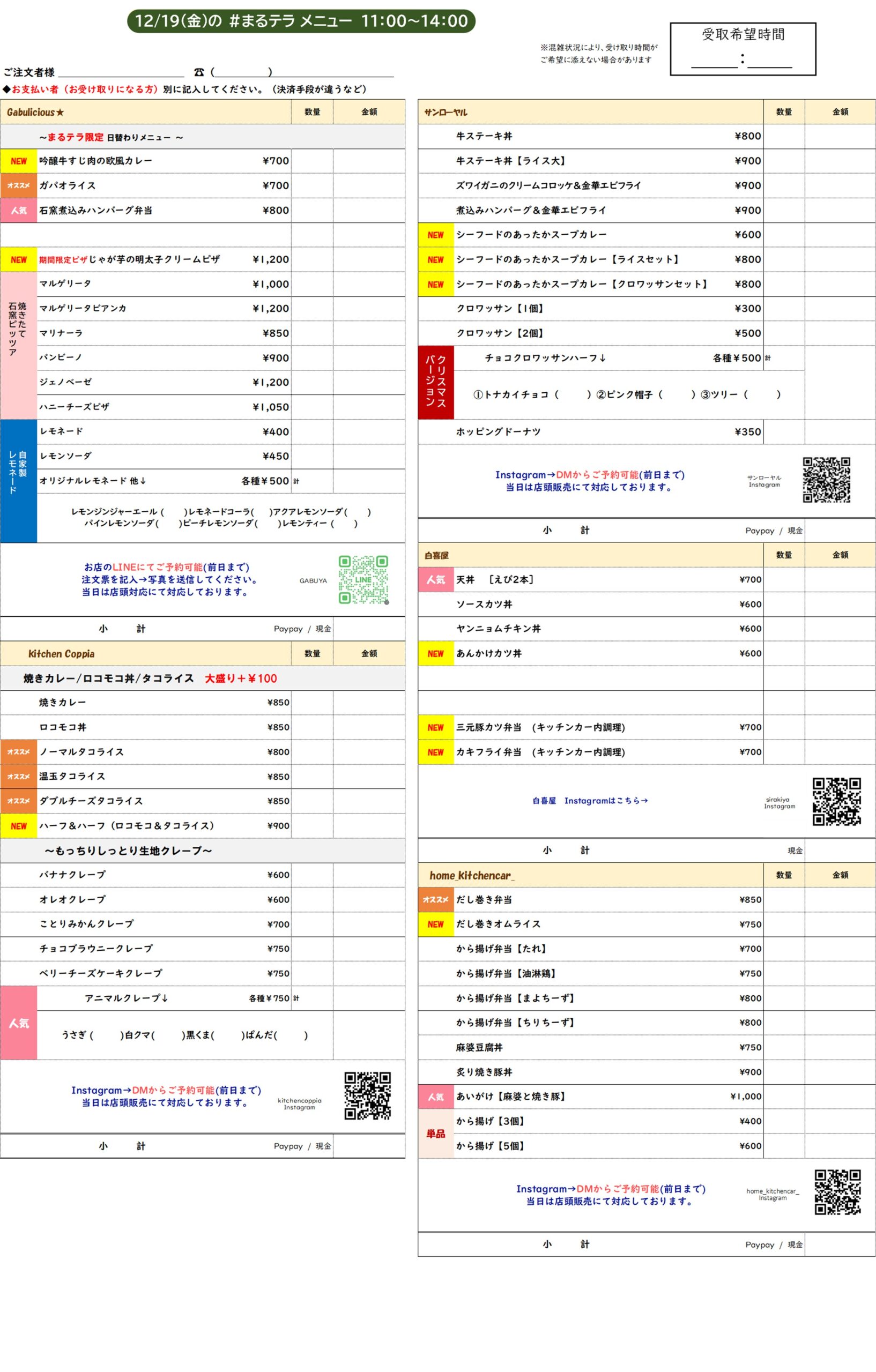 まるのうちのメニューはこちら!(2025/ 12/19)