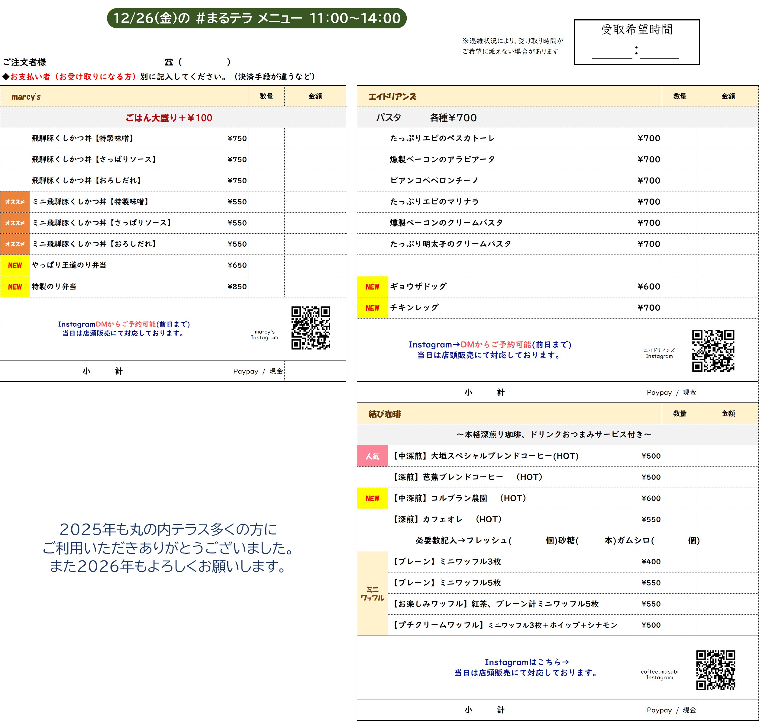 まるのうちのメニューはこちら!(2025/ 12/26)