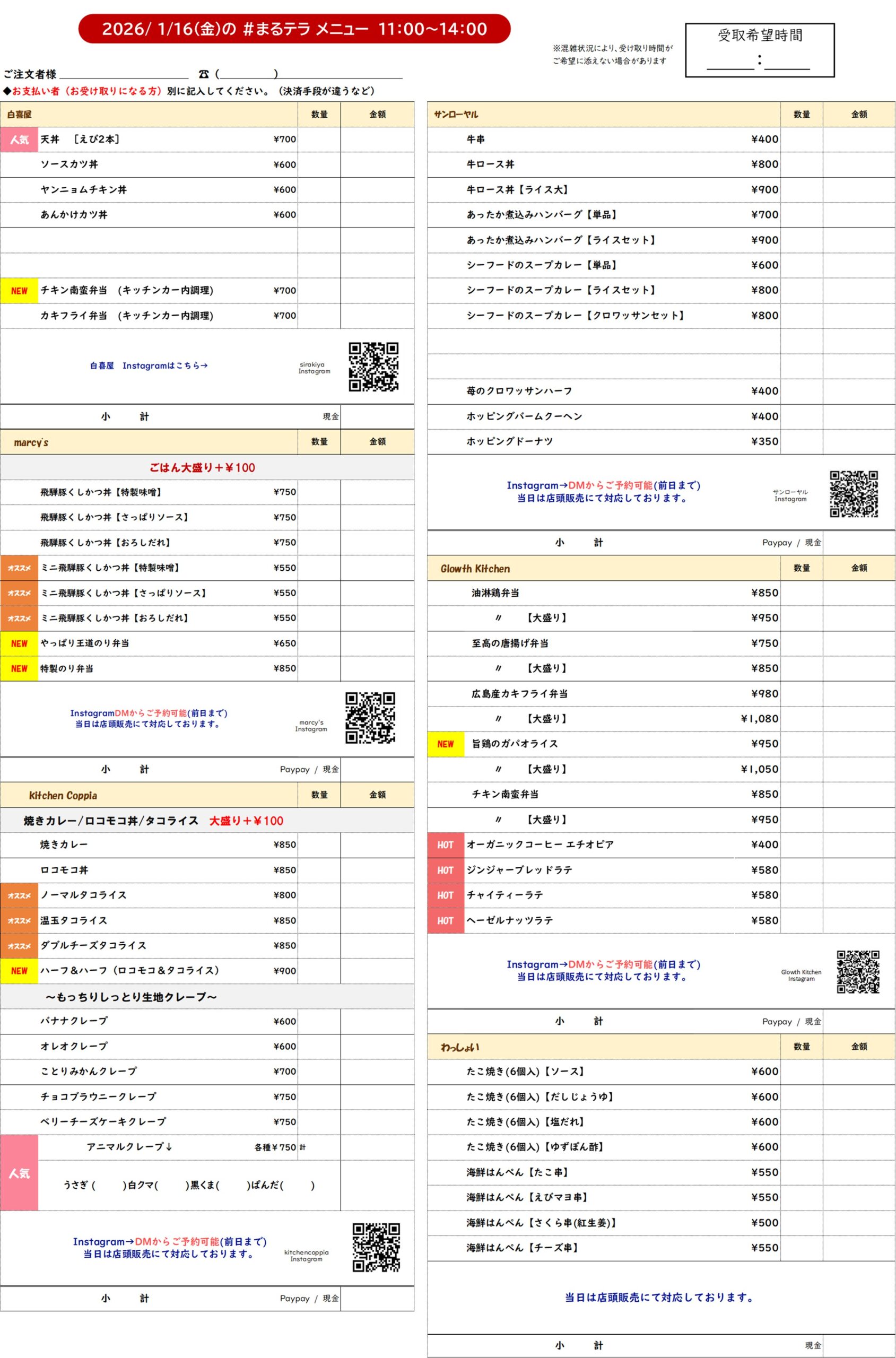 まるのうちのメニューはこちら!(2026/ 1/16)
