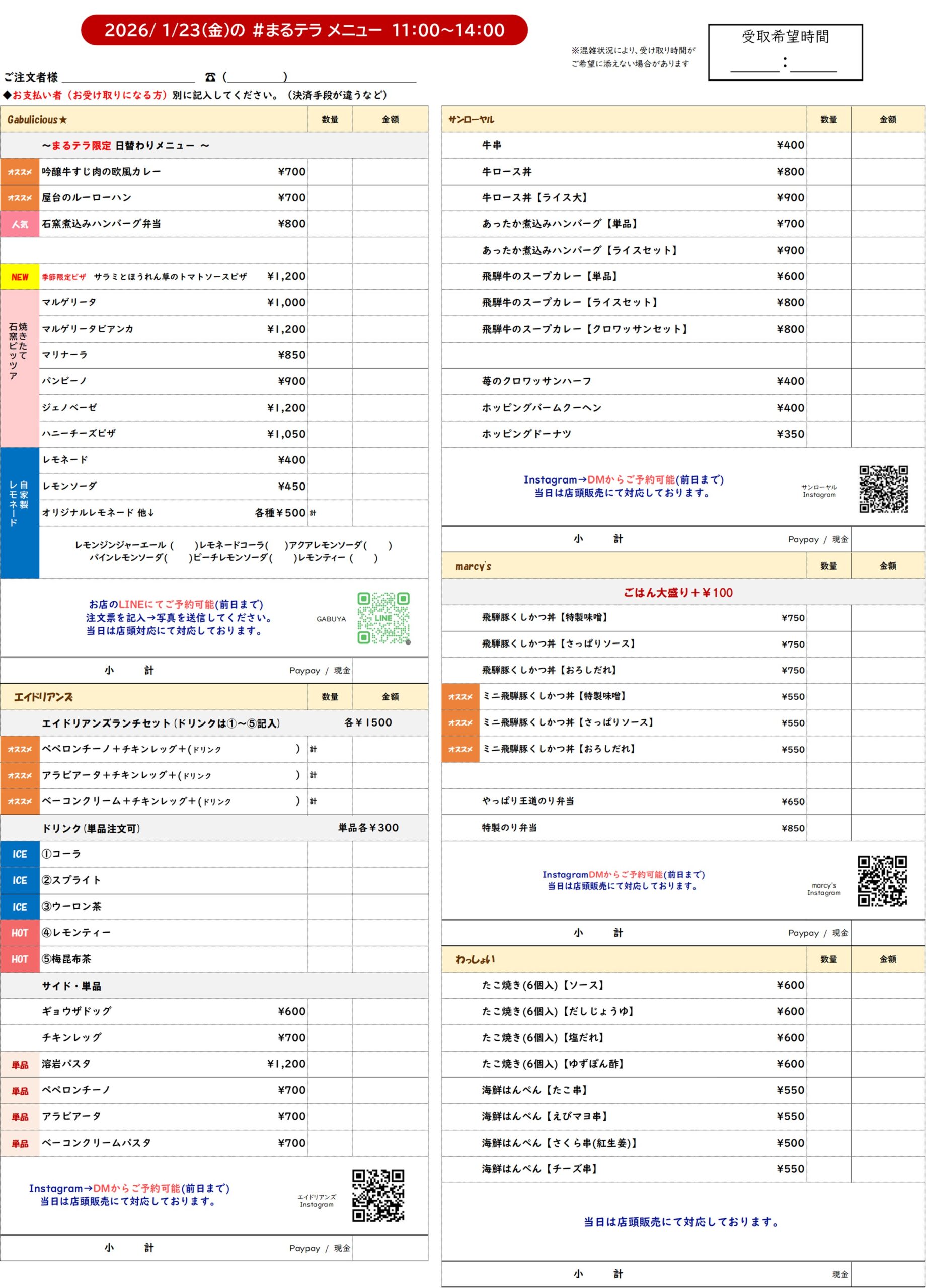 まるのうちのメニューはこちら!(2026/ 1/23)