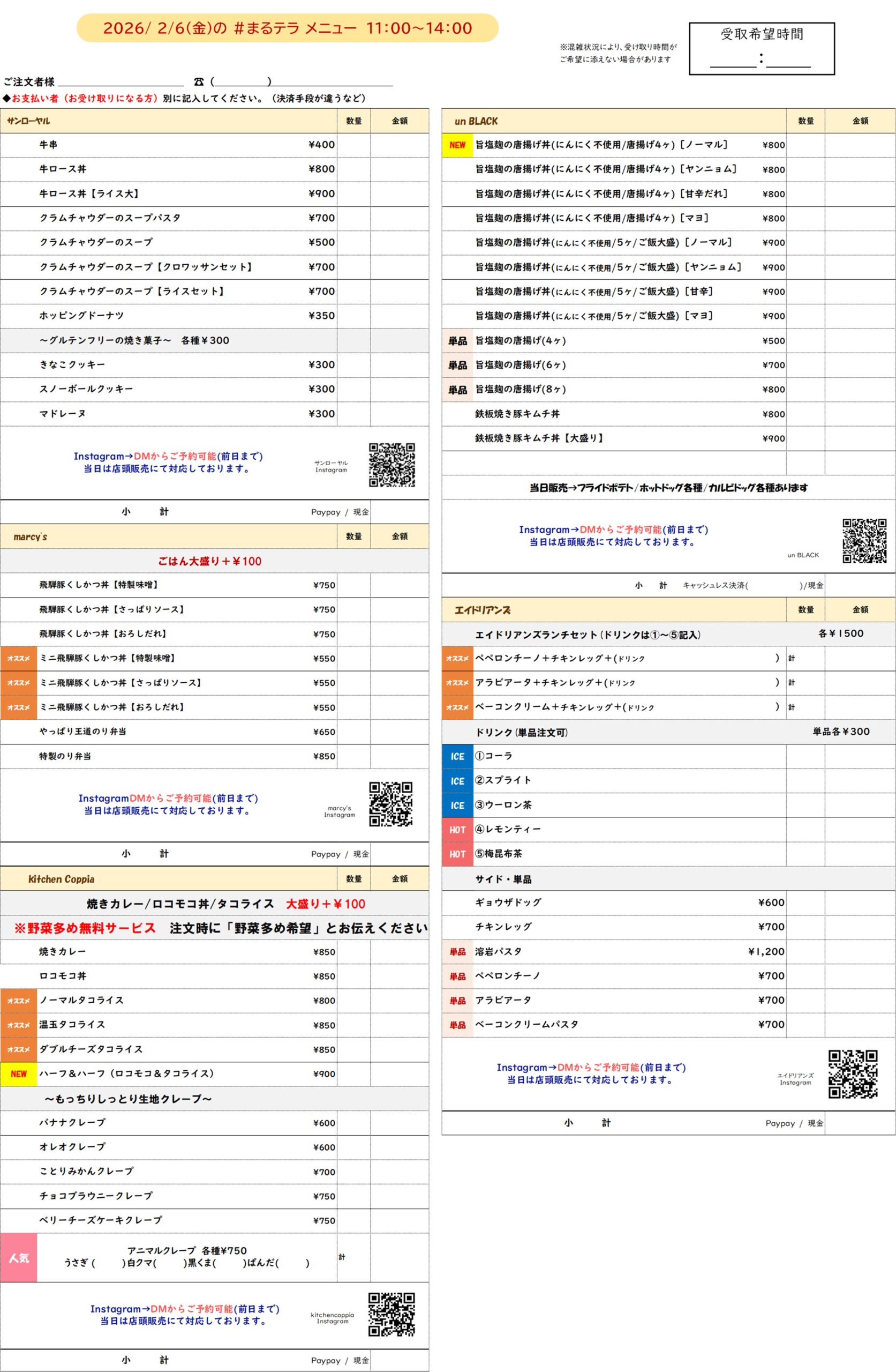まるのうちのメニューはこちら!(2026/ 2/6)
