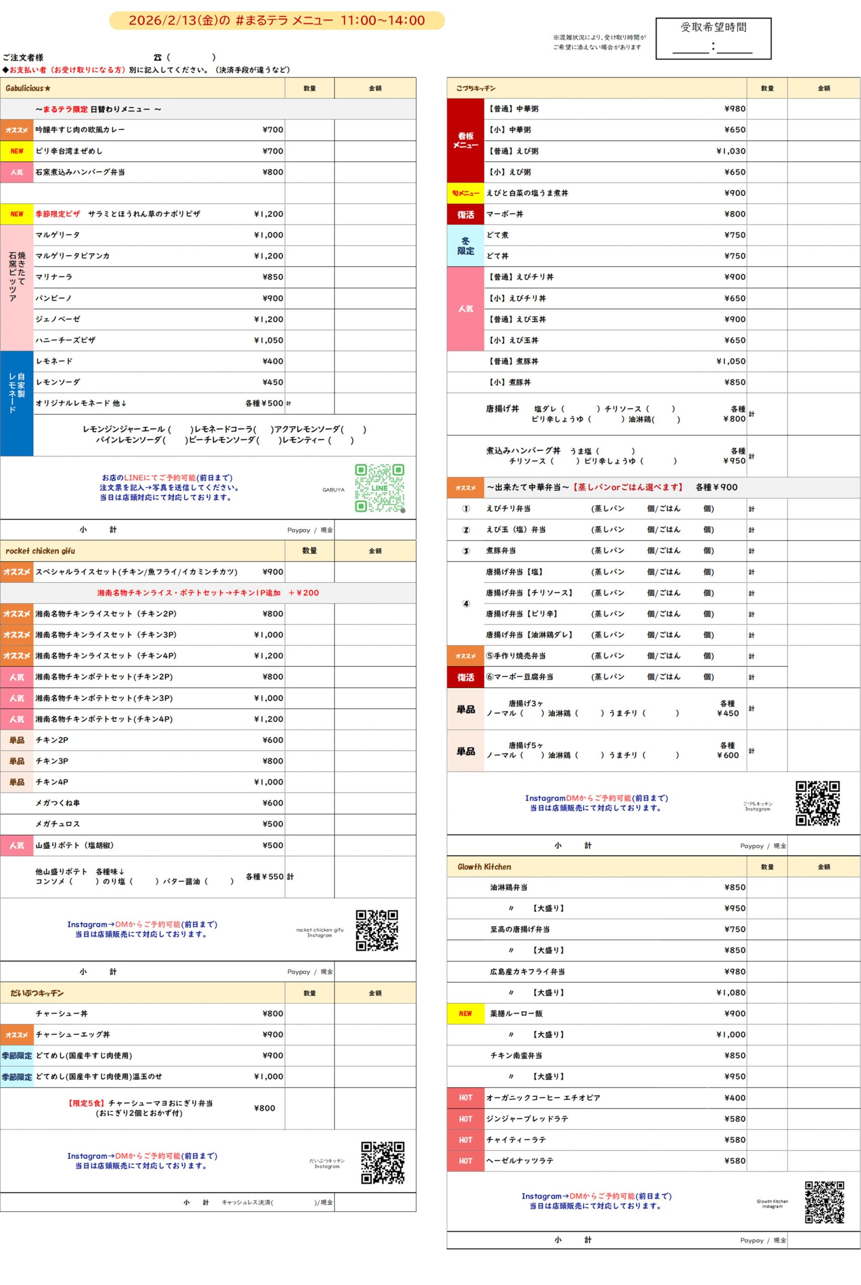 まるのうちのメニューはこちら!(2026/ 2/13)