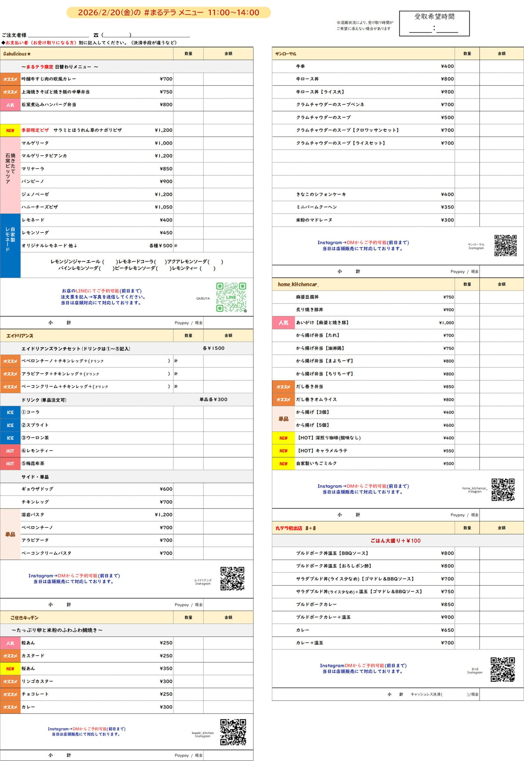 まるのうちのメニューはこちら!(2026/ 2/20)