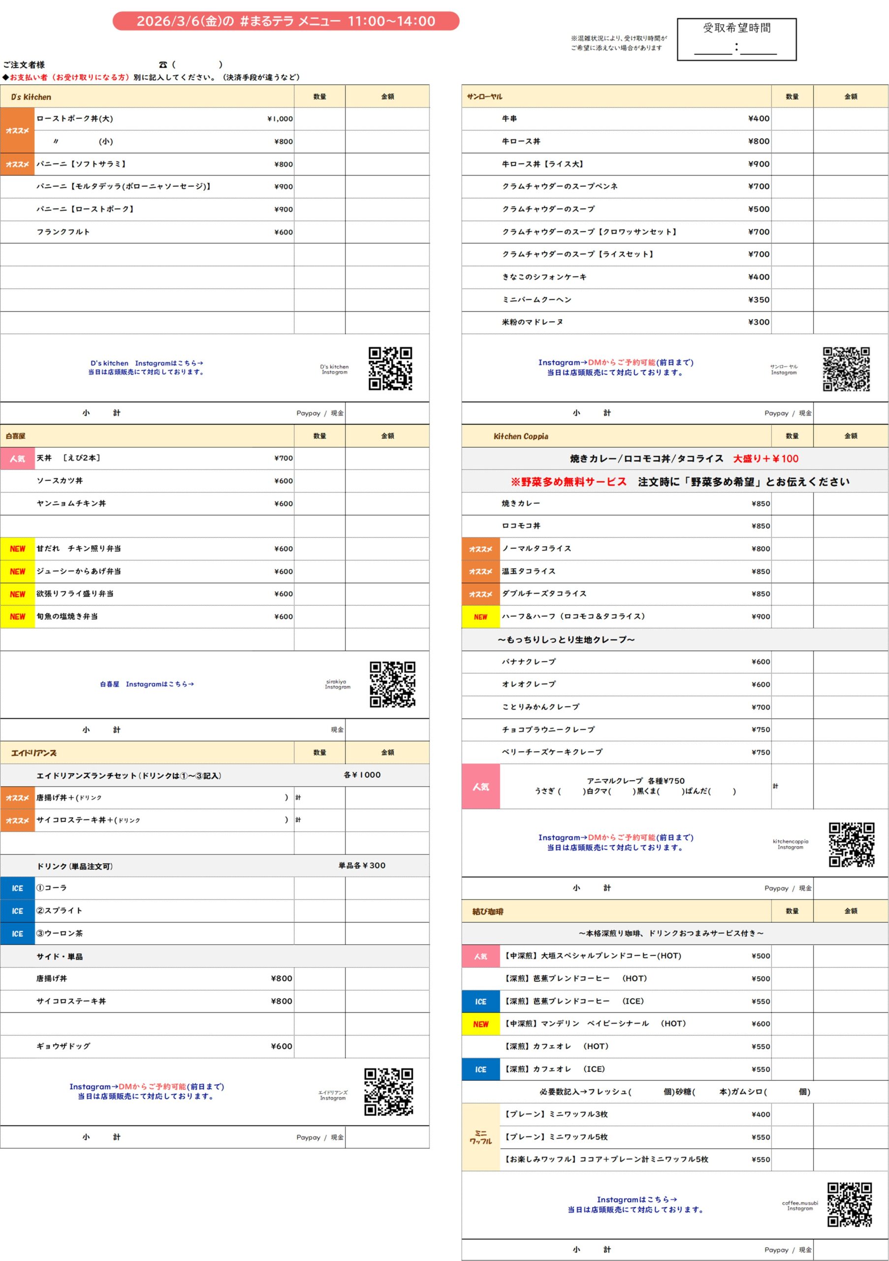 まるのうちのメニューはこちら!(2026/ 3/6)