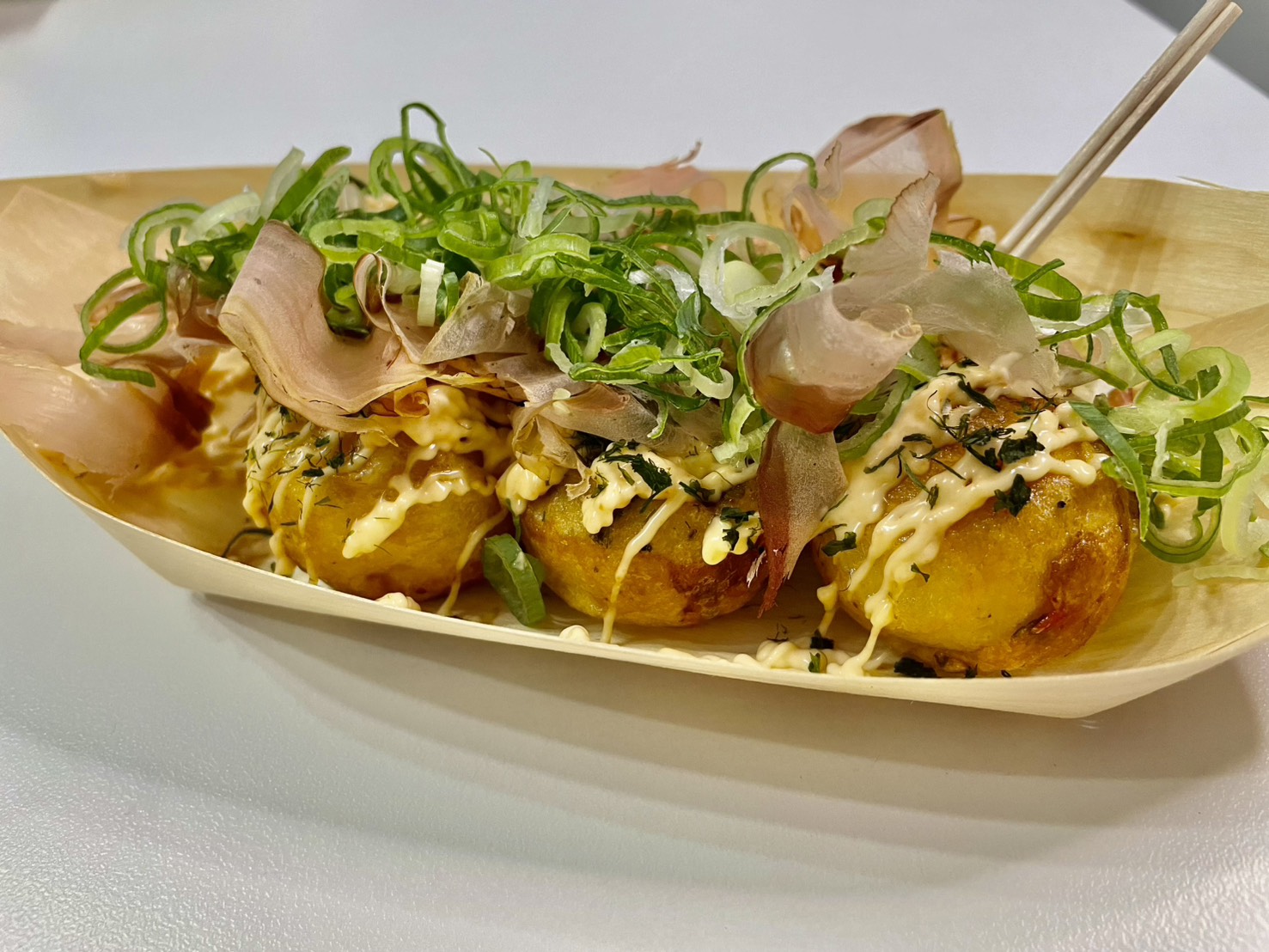 米粉100%のたこ焼きとチュロスをメインに販売しています。シンプルな味付けでお子様から大人まで楽しんでいただけると思います。また2026年よりプルドポーク丼をメインにランチにも力を入れていきます。プルドポークとは引き裂く肉という意味で、日本ではあまり馴染みがないですが、お肉のジューシーさ、ホロホロな食感を楽しんでいただけたらと思います。